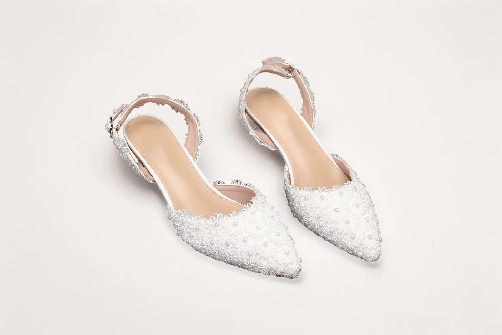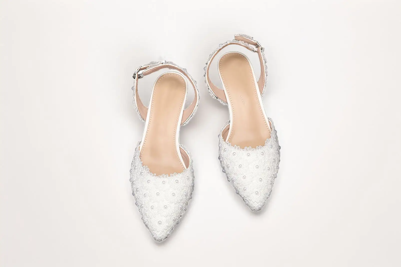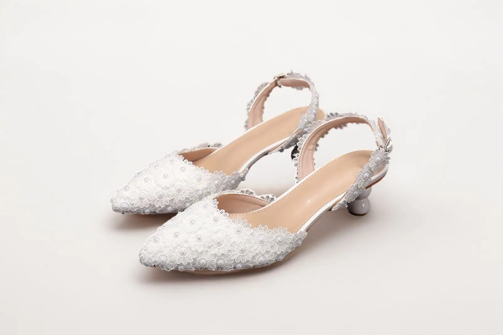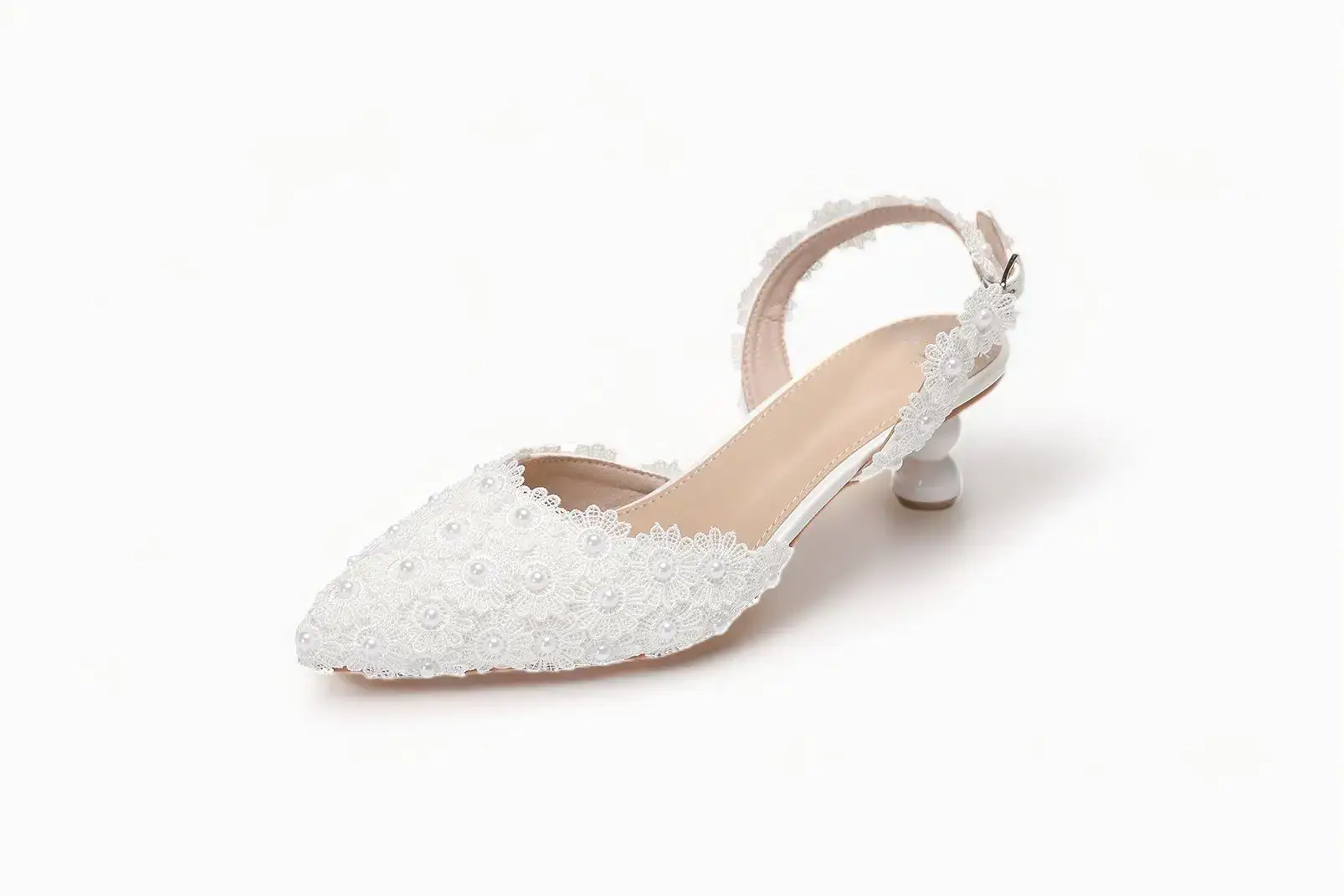 With a pointed toe and slingback strap, the Aiko Lace 50 offers a graceful silhouette that complements any bridal gown, especially lace or satin dresses. The luxurious leather insole ensures a comfortable fit, while the signature pearl accents enhance the overall beauty of the shoe.